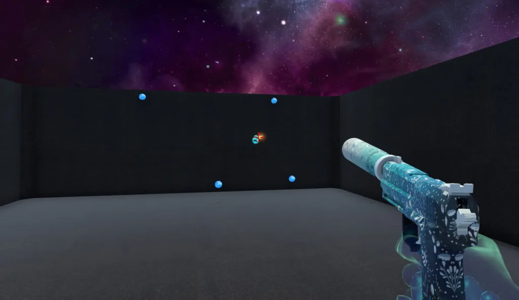 Adjustshot CS2 – Kicking off the flicking section, shoot at 2 targets on a wide wall with no variance in target depth. Targets are not static, and they have slight, gentle movement. This scenario is useful to train proper flicking technique, as it requires an initial flick and the microrrection needed due to the small target movements. Adjustshot is a very popular flicking task.